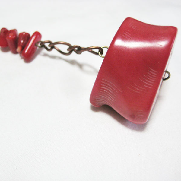 チャーム部分の珊瑚が大きくてかわいいネックレスです。