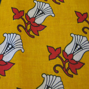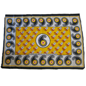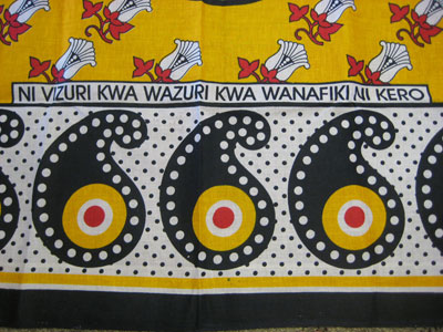 黄色×黒でペイズリー柄のタンザニアのカンガ布です。
