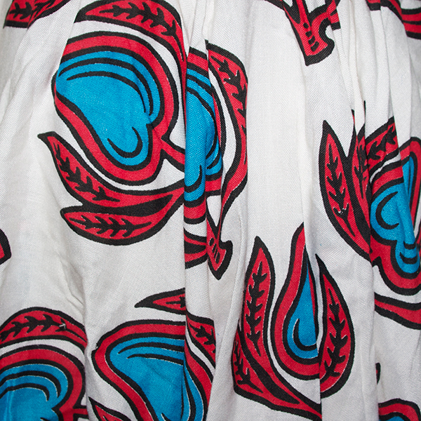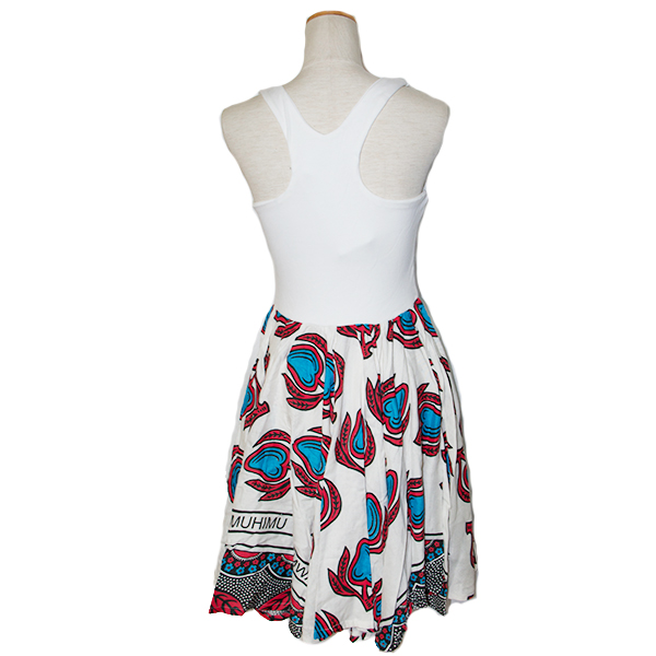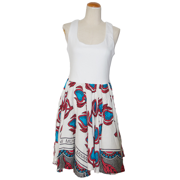 夏っぽくて素敵なワンピースですねー!こちらは白ベースのカンガ布に白のトップスがついています。