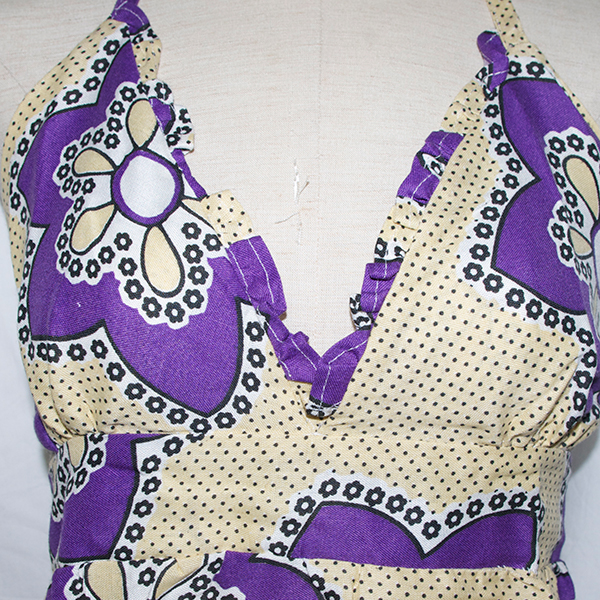 胸元が小さなフリルでかわいいです。後はシャーリングになっています。夏らしくて素敵なワンピースです。