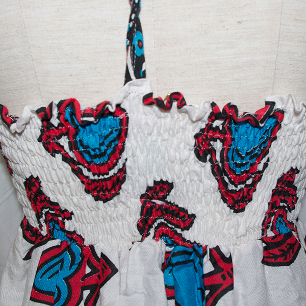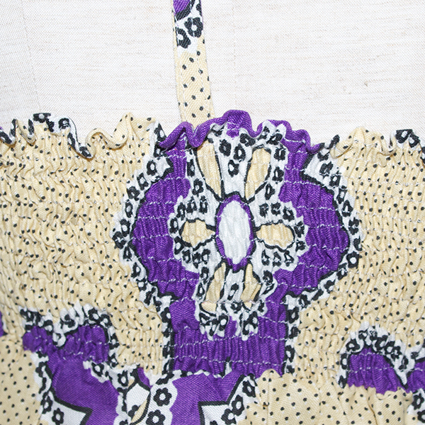 上からすっぽりかぶる形のワンピースです。シャーリングなので、伸びます。Mサイズのみのお取り扱い。