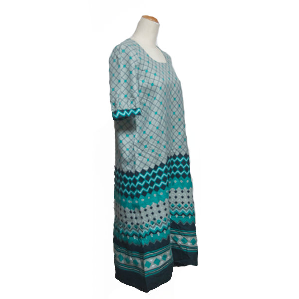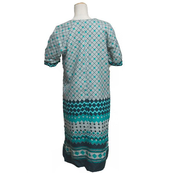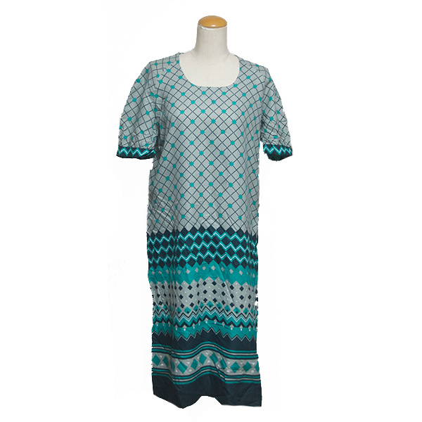 • 詳細 : グリーンやグレーベースの幾何学模様のワンピースです。