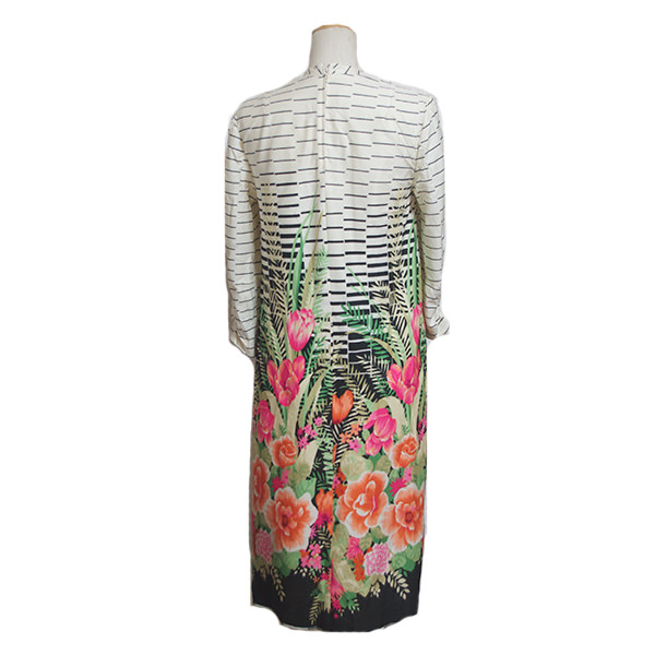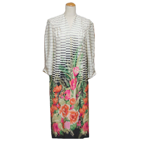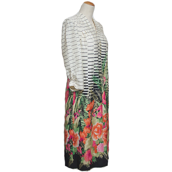 - 詳細 : 白地にブラックのボーダーに大きめで華やかな花柄のレトロなワンピースです。