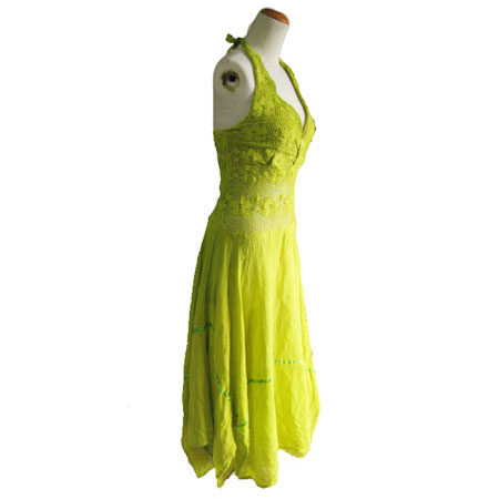 - 詳細 : ライムグリーンの色の綺麗なコットン&クロシェのワンピースです。