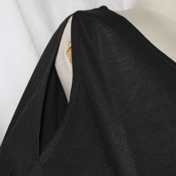 ショルダー部分は開いています。ボトムを細めにしてどうぞ。