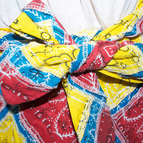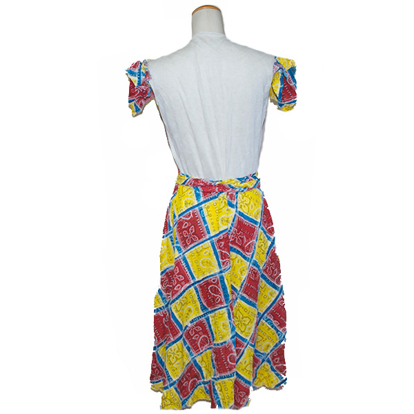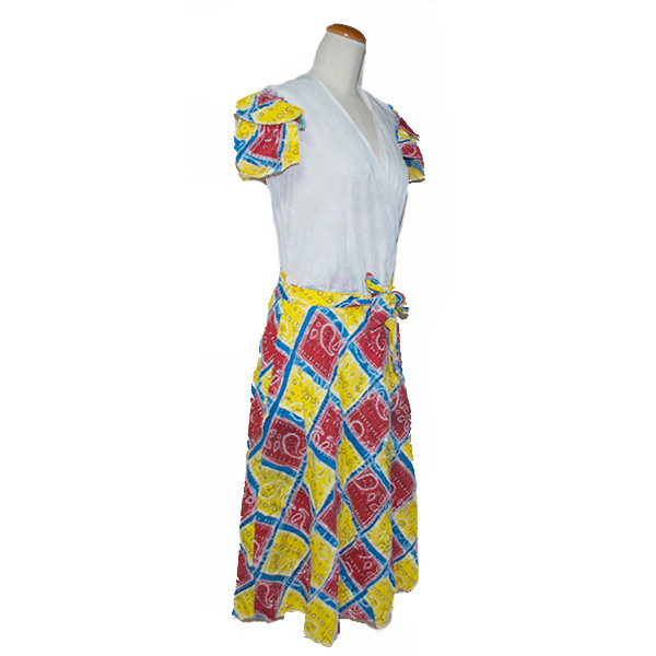 - 詳細 : トップスはニット素材、スカート部分はコットンのパーッチワークのラップワンピースになっています。
