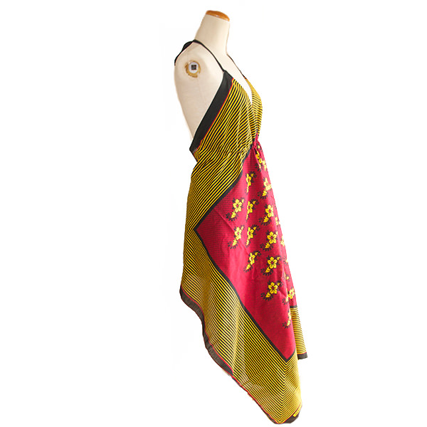 赤と黄色の花柄の相性が良く、ビーチや遊びに来ていきたくなる柄行きです。