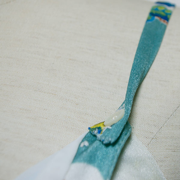 サイドにスリット入り。裏地付き。前下がり部分は前がボタンです。