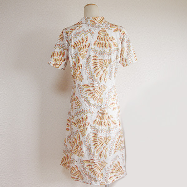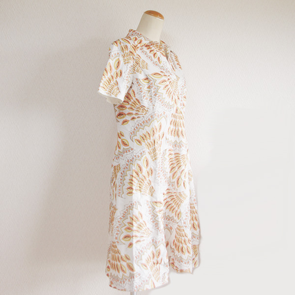 • 詳細 : フランス古着の白を基調とした羽根柄キャピソール型ワンピースです。