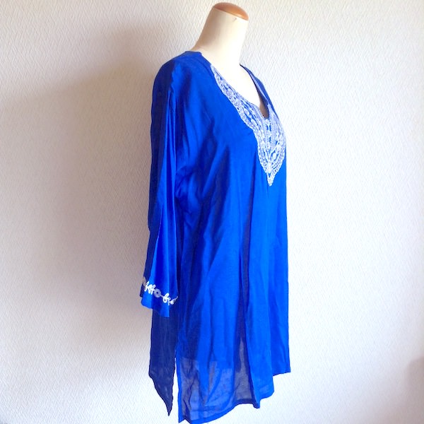 - 詳細 : レーヨン素材で涼しい印象のブルーのチュニックワンピースです。