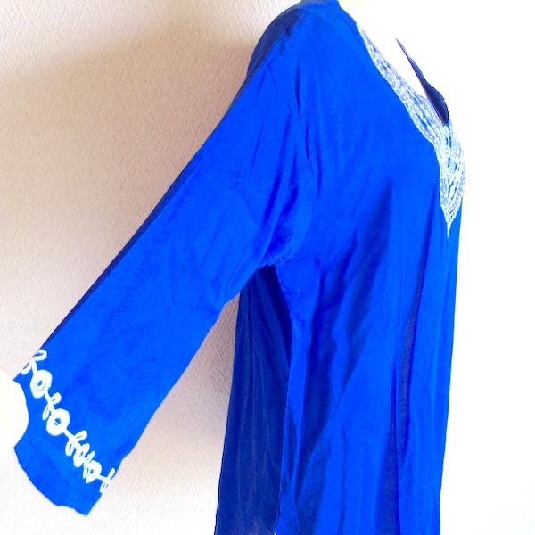 綺麗な青に白い刺繍がとても映えます。