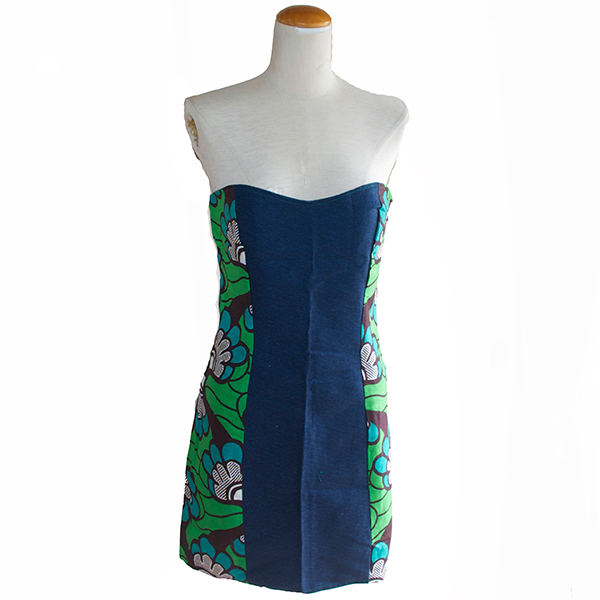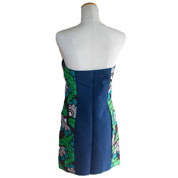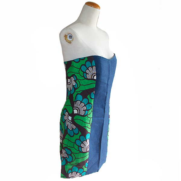 • 詳細 : ベアタイプのデニムワンピースです。どちらもアフリカンバティックです。ステッチはバティックと同じ色です。