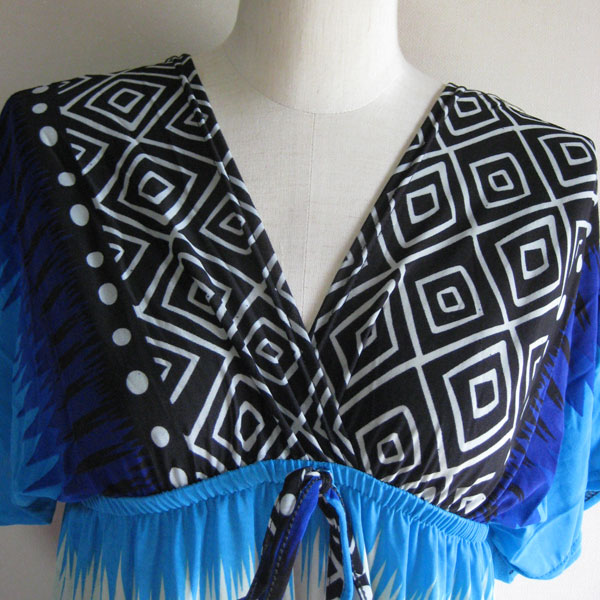 裾と首元はエスニックテイストたっぷりのモノトーン柄です。