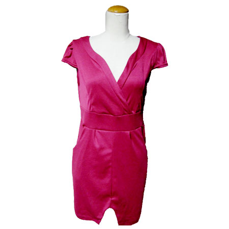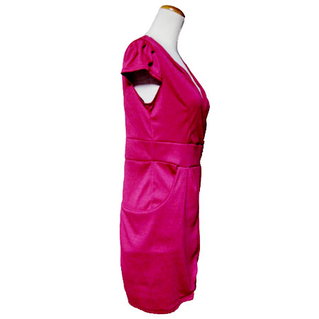 - 詳細 : バーガンディーのストレッチの効いた深Vネックのカシュクールワンピースです。
