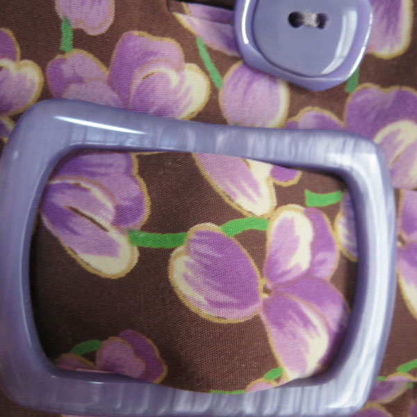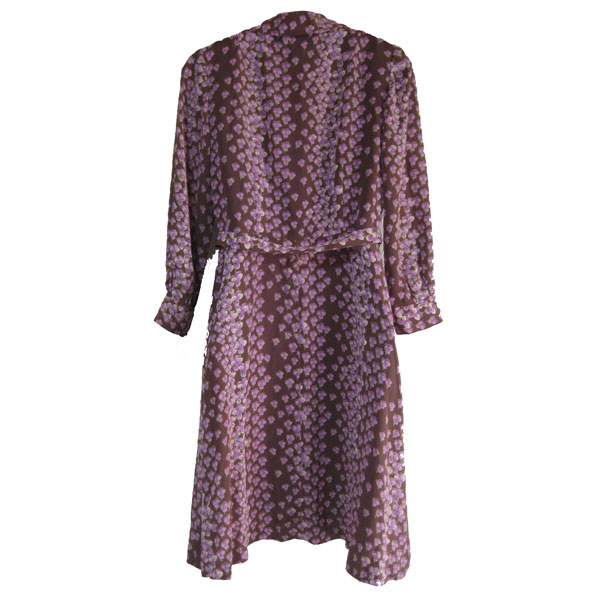 - 詳細 : 茶色ベースに藤紫の小花柄のワンピースです。