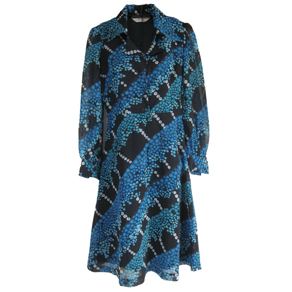 - 詳細 : 黒地にブルーのグラデーションの花柄のワンピースです。