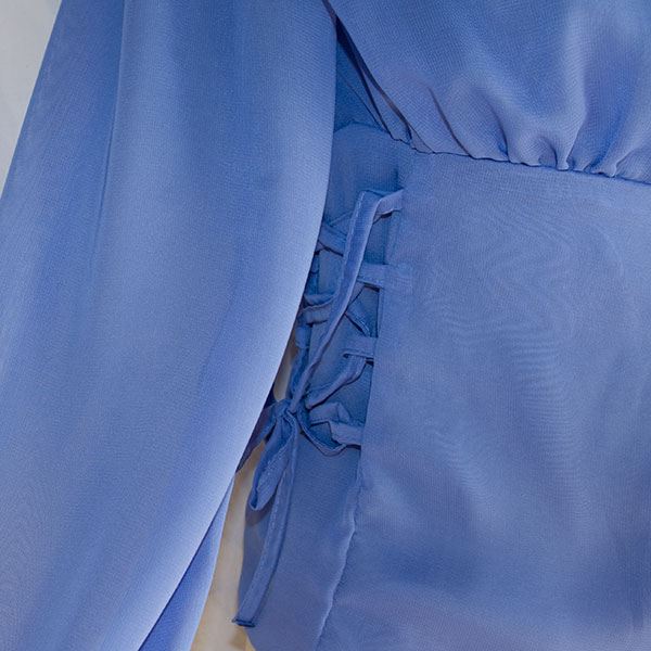 ウエスト部分がスピンドル(編み上げ)になっていて、ぐっと大人っぽい印象です。