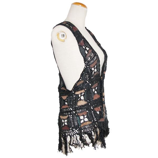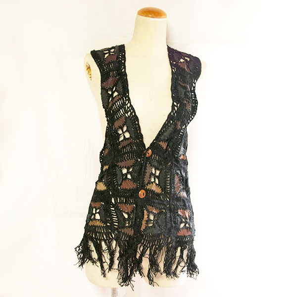 - 詳細 : 黒ベースの茶色レザーのパッチワークのジレ。ベストです。