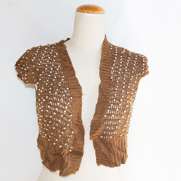 - 詳細 : かぎ針ニットで編まれたボレロです。ウッドビーズが一緒に編み込まれています。