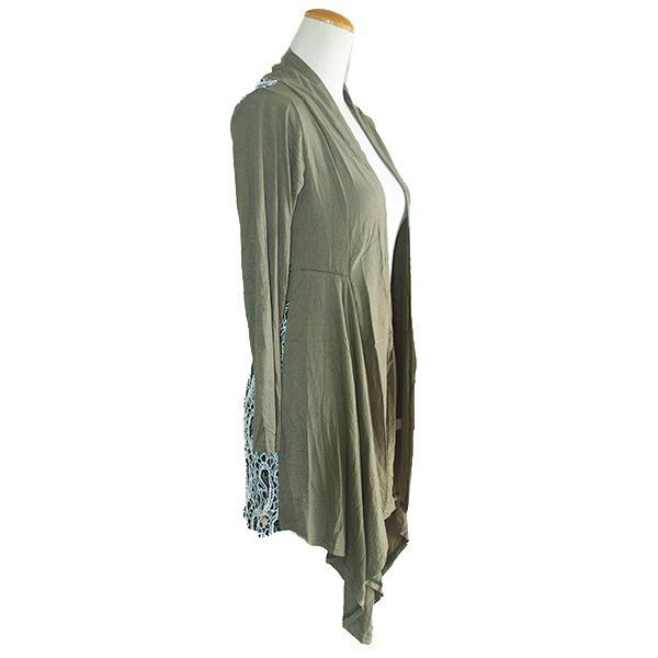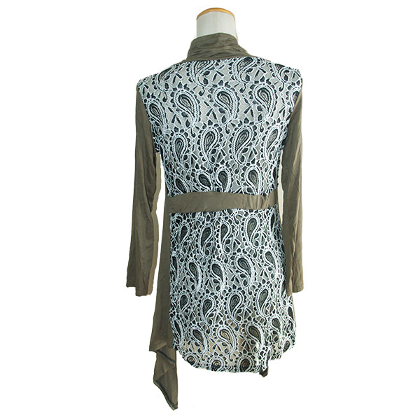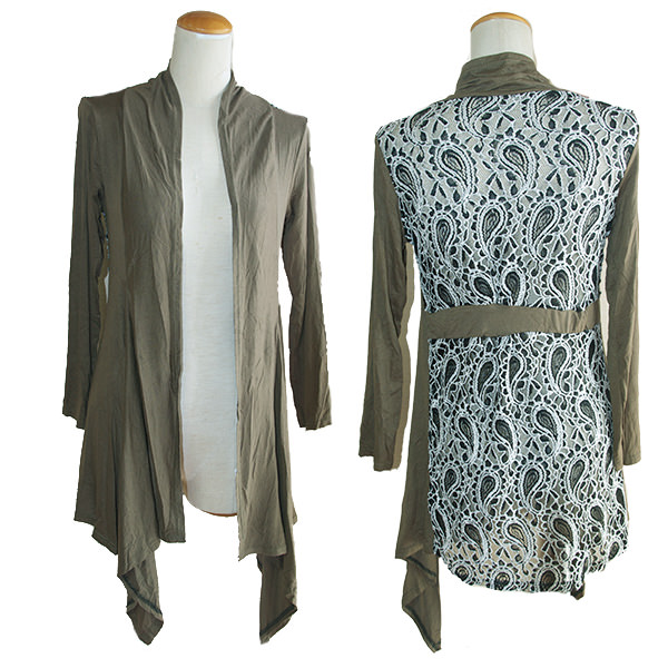 - 詳細 : カーキ色のアースカラーに背中がレース切替えになった前身頃が長めのカーディガンです。