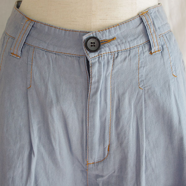 • 詳細 : ダンガリーデニムのワイドパンツです。茶色のステッチがレトロです。