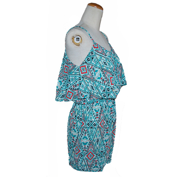 - 詳細 : パステルグリーンのエスニック柄のシフォンロンパースです。
