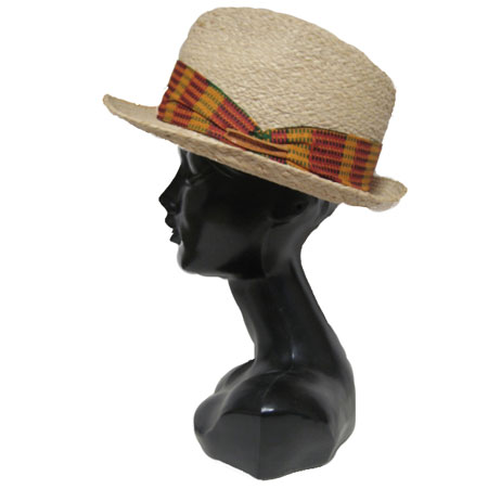 ベースがベージュで涼しげです。帽体は赤ベースのアフリカンテイスト!