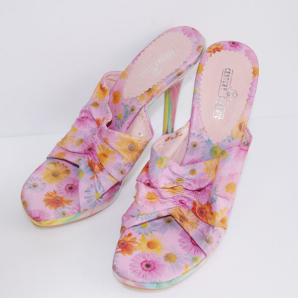 • 詳細 : NYからのインポートの花柄ハイヒールサンダルです。ヒール部分も花柄になっていてレトロです。ヒールの高さも十分にあり、パステルピンクでかわいい印象です。