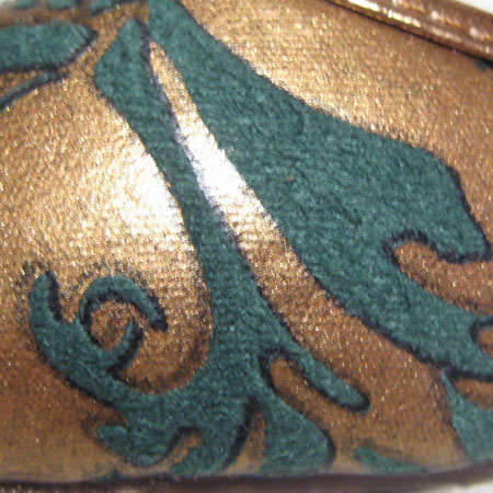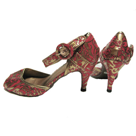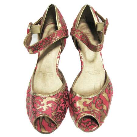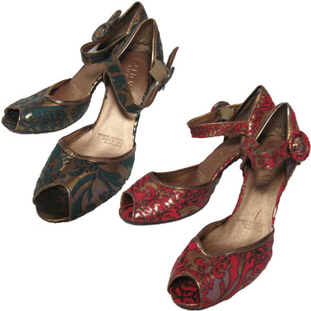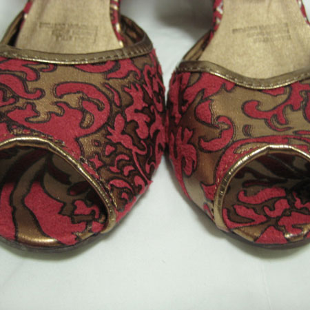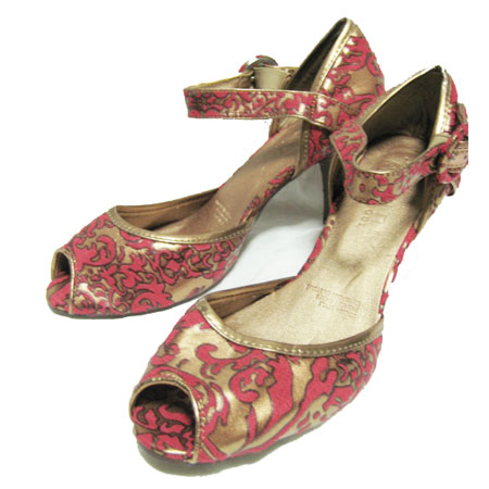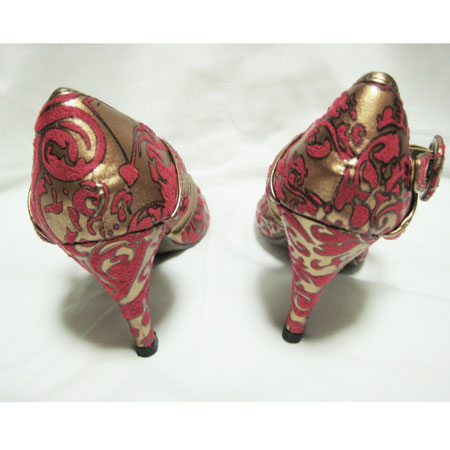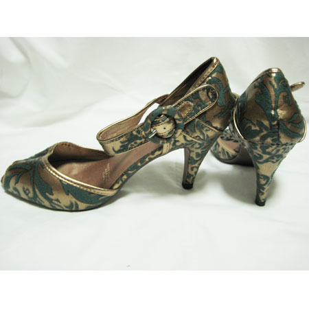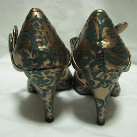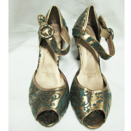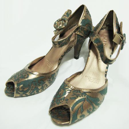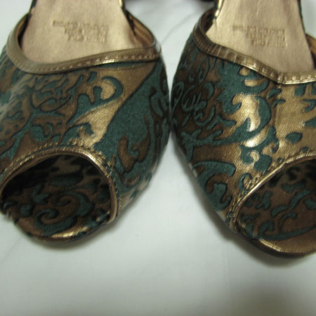 ゴブラン柄ブロンズオープントウパンプス