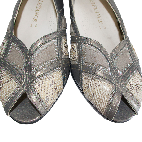 - 詳細 : トウ部分がパッチワークになっているオープンバックの
