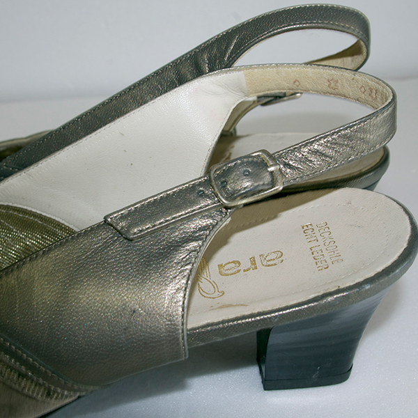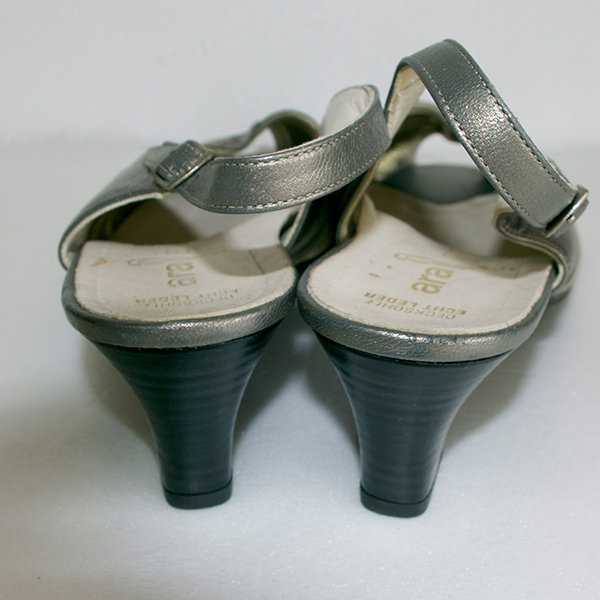 パンプスです。シルバーよりのグレーで。少し光沢があります。