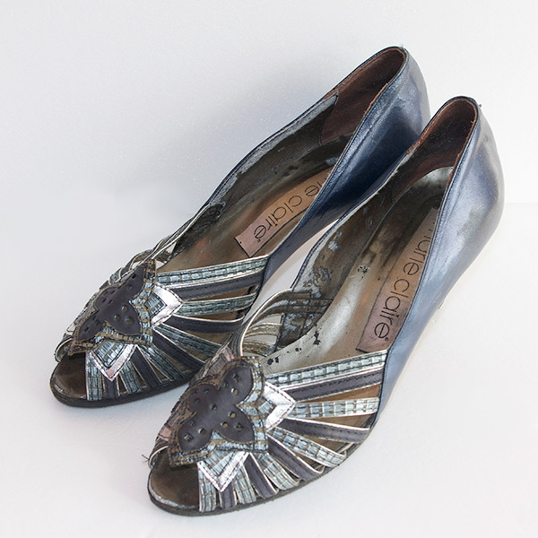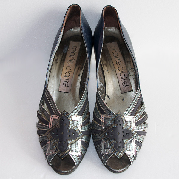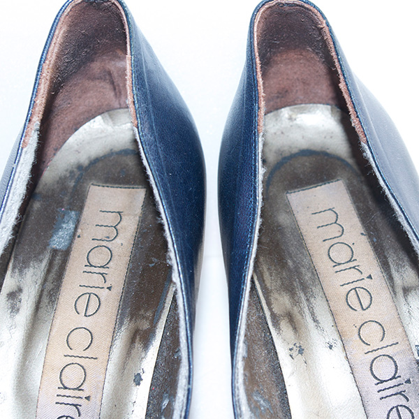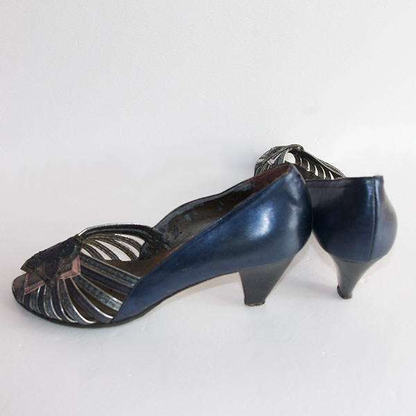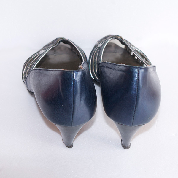 - 詳細 : ネイビーベースのヒールが低めのオープントウパンプスです。
