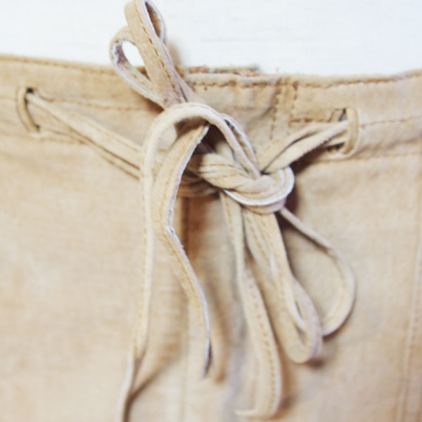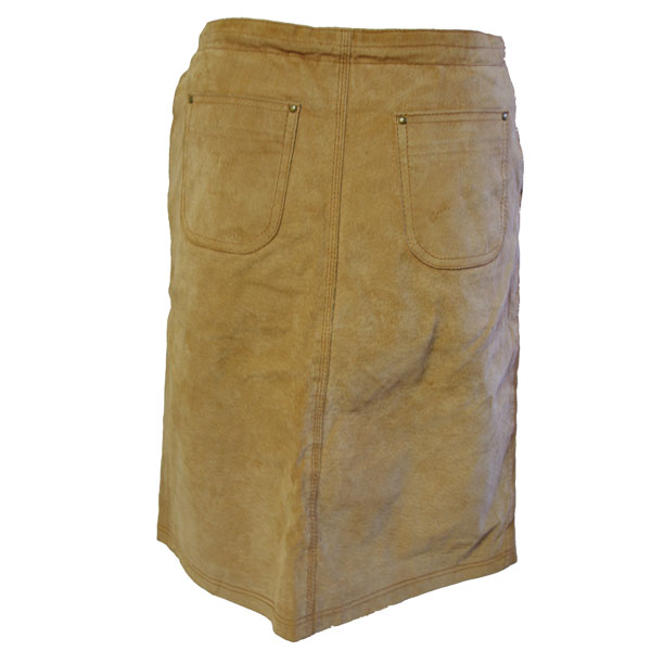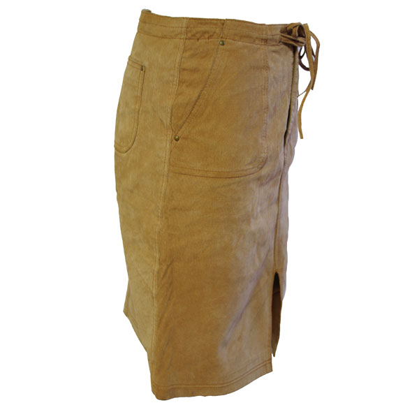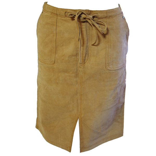 • 詳細 : 薄めの茶色のレザー膝丈スカートです。 ウエストリボンで括れる様になっています。