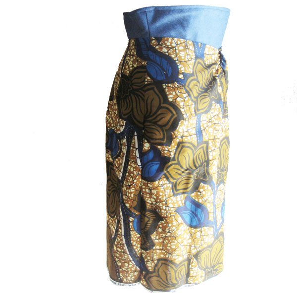 • 詳細 : アフリカンバティックのタイトスカートです。前はシャーリング。ウエスト部分はデニムです。