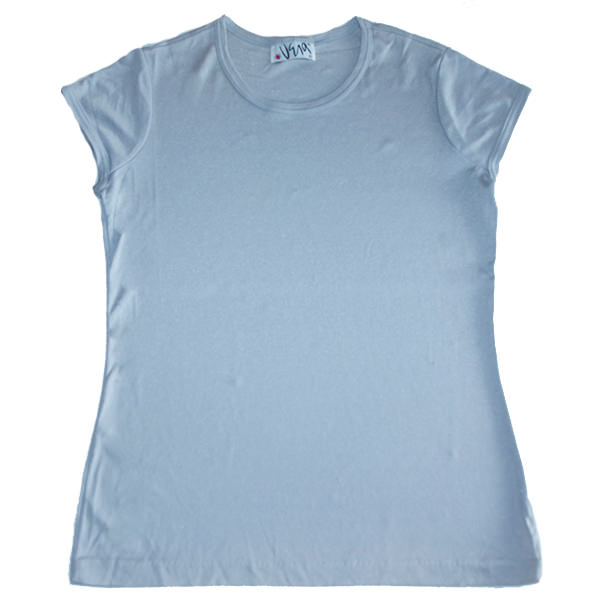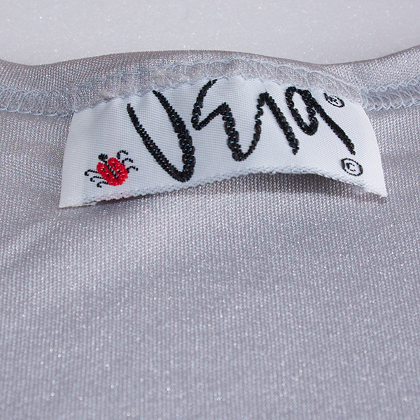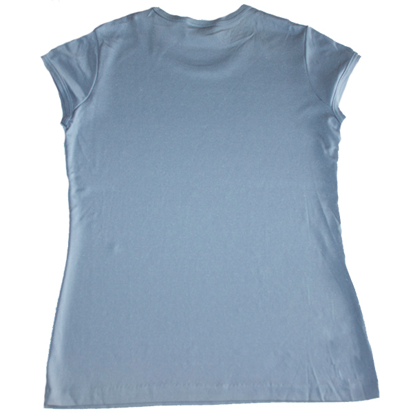 ナイロンの光沢あるグレーのTシャツです。グレーよりシルバーに近いです。