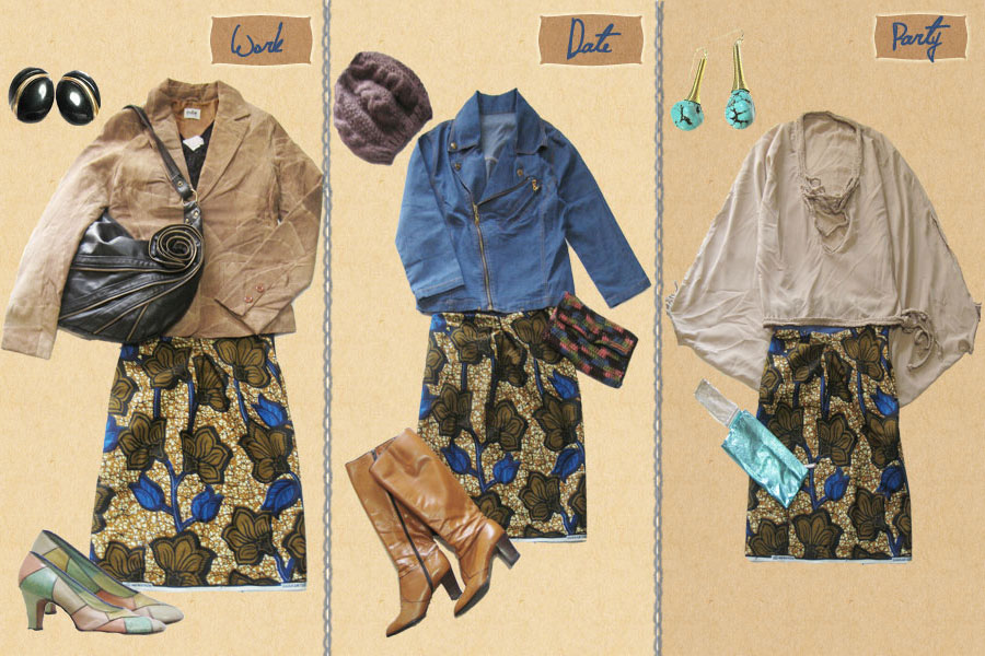 同じアイテムでのコーディネートのバリエーションを紹介しています。
