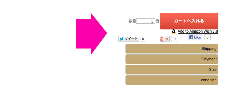 1:いつもの商品ページのカートの下に ”ADD to AMAZON wish list”が出てます。