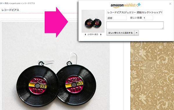 2:そちらをクリックしていただくと、ポップアップでwish listのページが開き、”ほしいものリストに追加する”