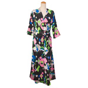フランス古着幾何学模様柄キャミソールワンピース (op391)