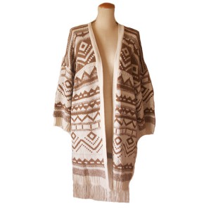 ネイティブ柄ニットポンチョ風カーディガン