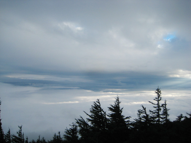 めちゃくちゃ歩いて、多分15時間位。やーーーっと6合目のお宿前。すこーしだけ晴れて、雲海が見れました。
