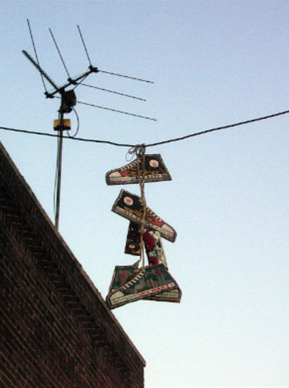 ●Used to be a gang sign–sneakers hanging over telephone or electrical wires were to designate gang turf.