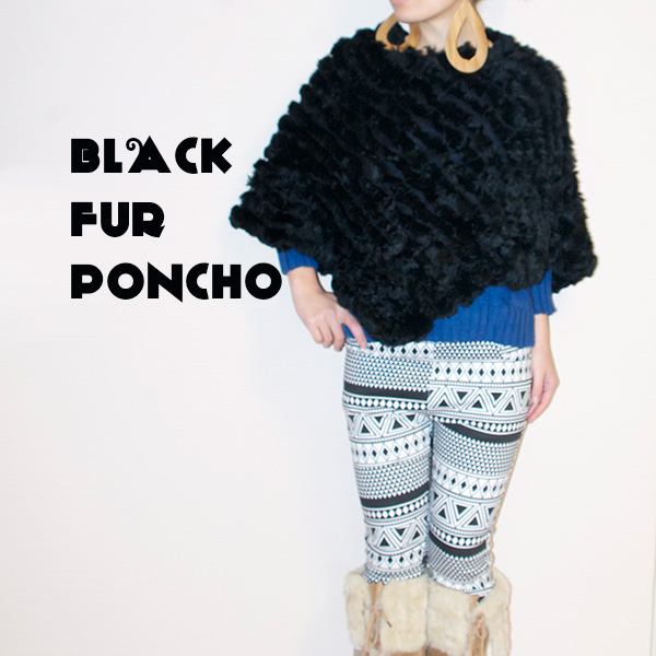 ファーポンチョでシックなアイテムをカジュアルダウンしました。 ふわふわのモコモコです。 黒ベースにまとめて、コーディネートしました。 参考に、是非♩