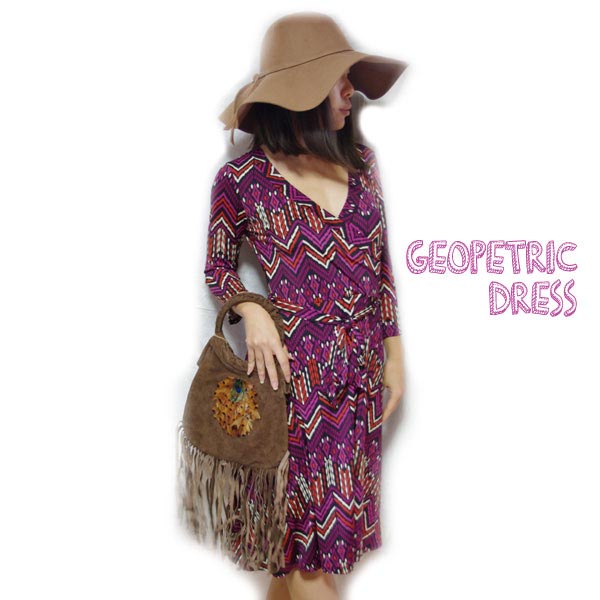 大人気のラップワンピースのコーディネート!しかも幾何学模様!大人です。