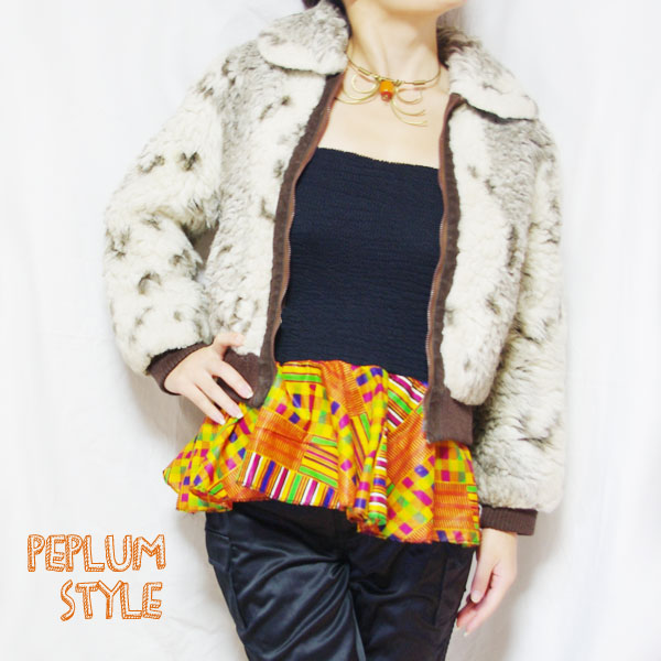 オリジナルのケンテ柄のぺプラムトップスでコーディネート例を作って見ました。