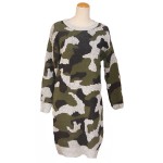 白っぽいファーにグレーの花柄ワンピースで大人なコーディネートです。