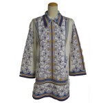 スタンドカラーで、前ボタンが無いタイプのヴィンテージの花柄カーディガンをこれまた70sのデニムと合わせてみました。