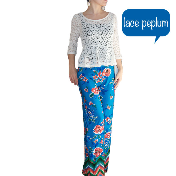 総レースのペプラムトップスと花柄パンツで春コーディネートを作ってみましたー!