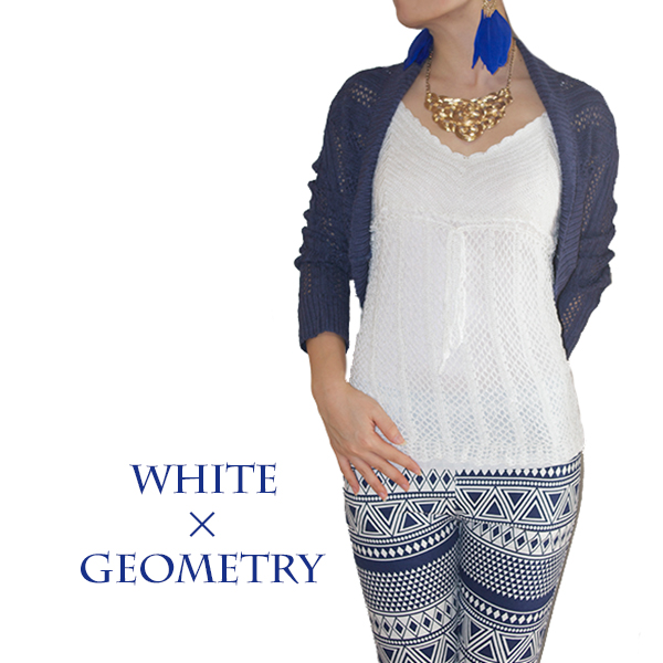 幾何学模様のレギンスパンツのコーディネートを作ってみました。