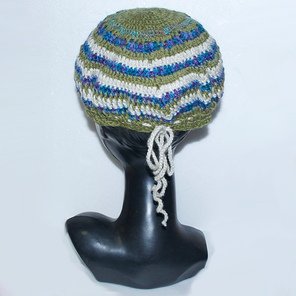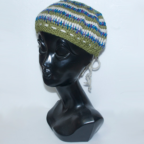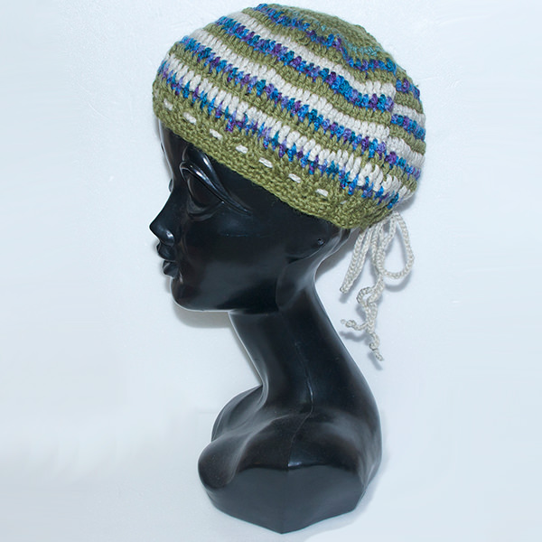 - 詳細 : グリーンベースでブルー、ホワイトの3色のボーダーのニットタム帽子です。